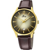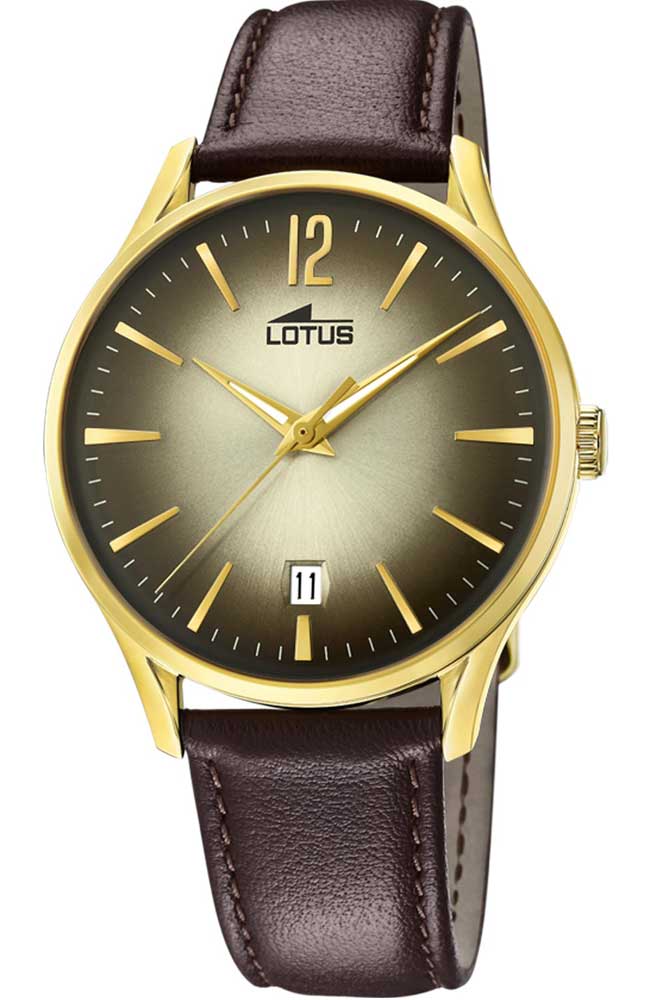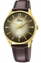 Ανδρικό ρολόι χειρός Lotus από επιχρυσωμένο ανοξείδωτο ατσάλι με μπεζ καντράν και καφέ δερμάτινο λουράκι.