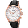 Ανδρικό ρολόι χειρός Lotus από ροζ επιχρυσωμένο ανοξείδωτο ατσάλι με λευκό καντράν και μαύρο δερμάτινο λουράκι.