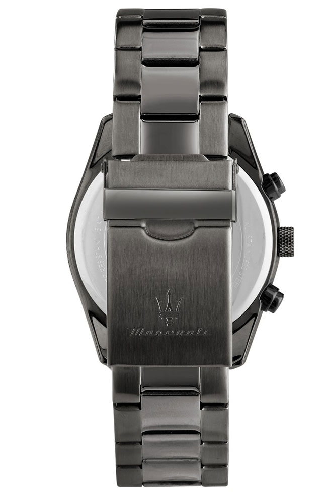 Ανδρικό ρολόι Maserati από μαύρο ανοξείδωτο ατσάλι με μπλε καντράν και μαύρο μπρασελέ.