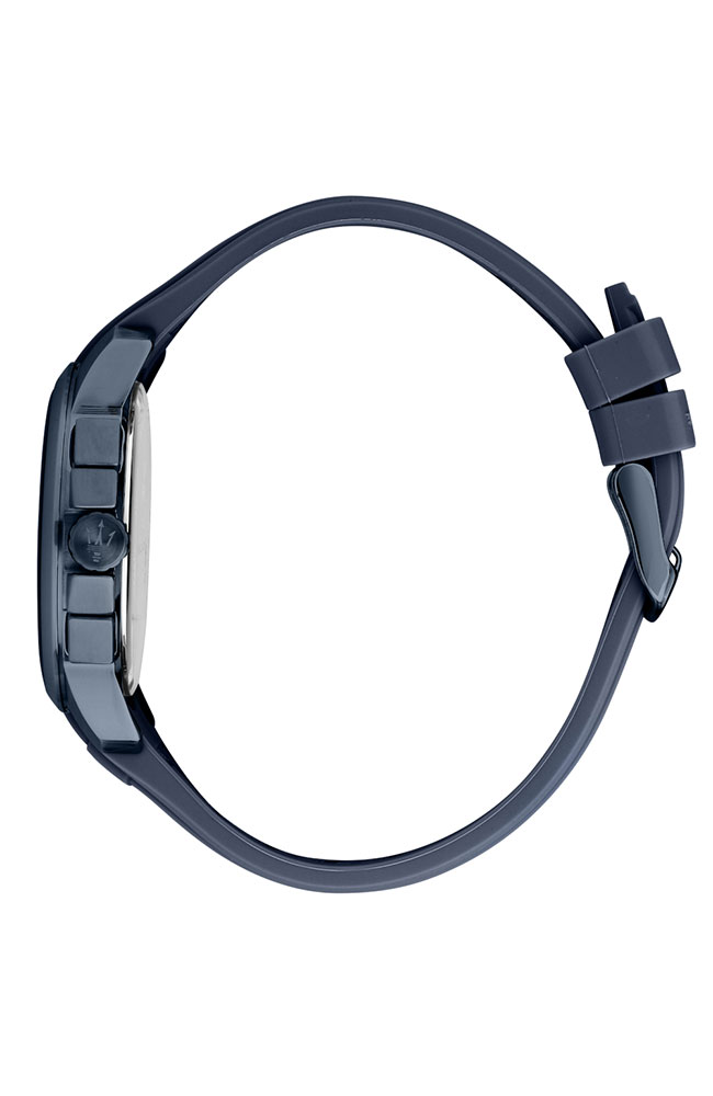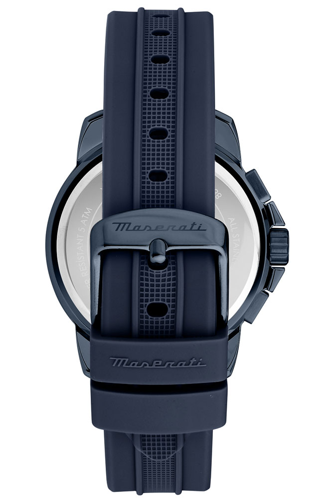 Ανδρικό ρολόι χρονογράφος Maserati από μπλε ανοξείδωτο ατσάλι με μπλε καντράν και μπλε καουτσούκ λουράκι.