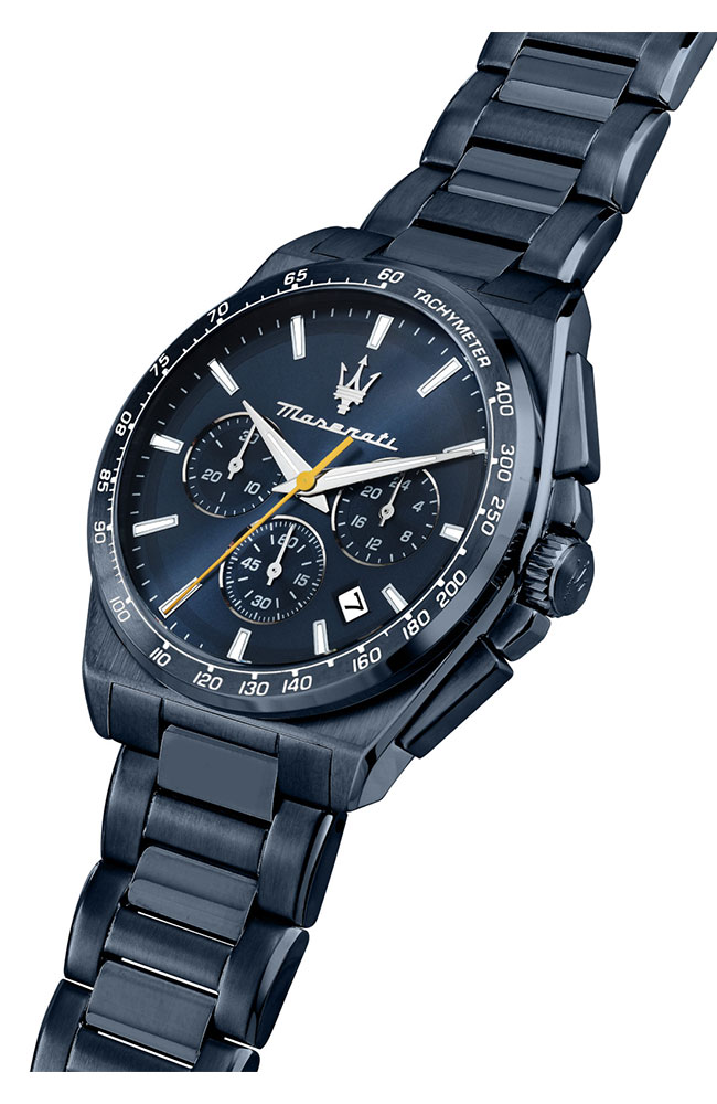 Ανδρικό ρολόι χρονογράφος Maserati από μπλε ανοξείδωτο ατσάλι με μπλε καντράν και μπλε μπρασελέ.