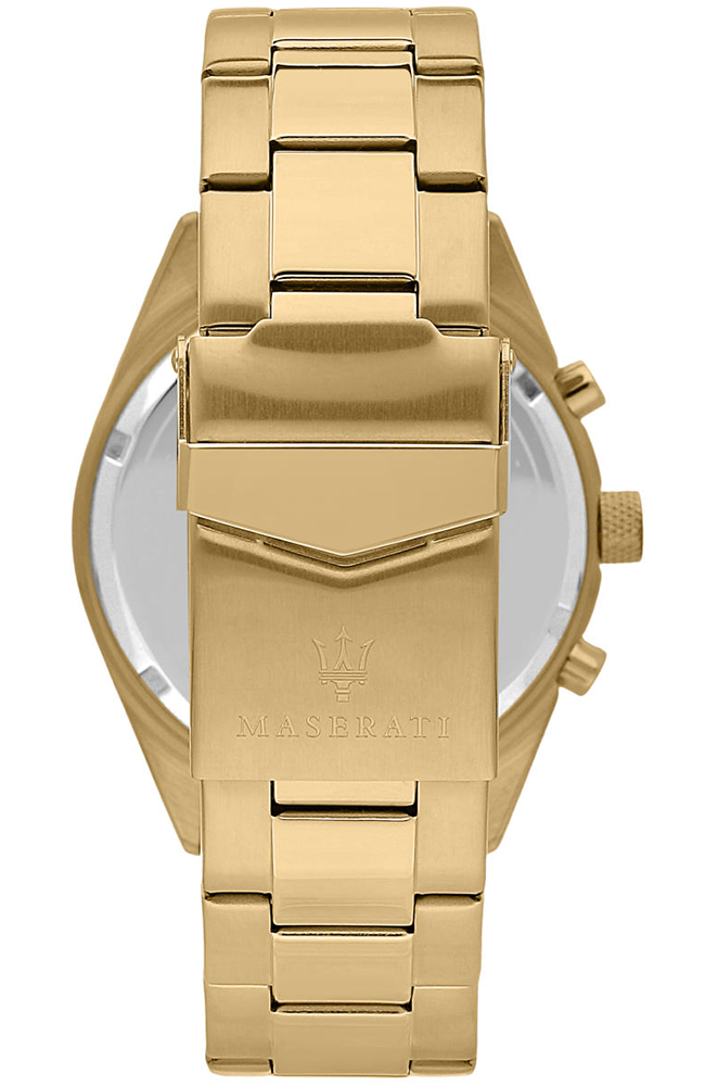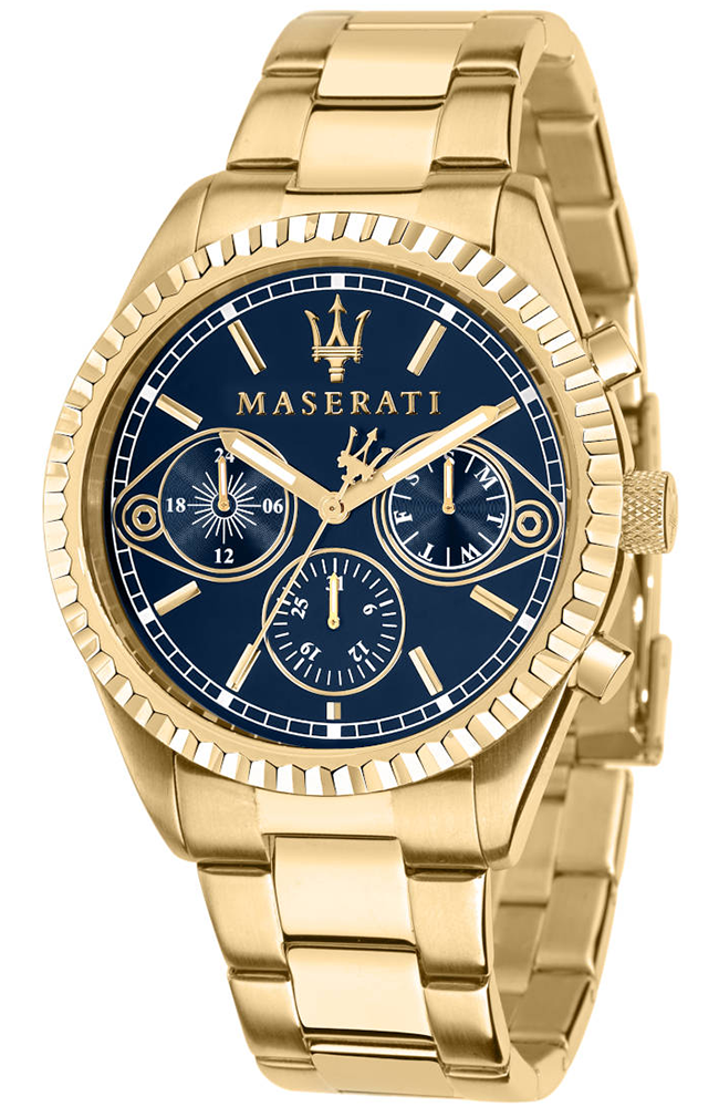 Ανδρικό ρολόι Maserati από επιχρυσωμένο ανοξείδωτο ατσάλι με μπλε καντράν και μπρασελέ.