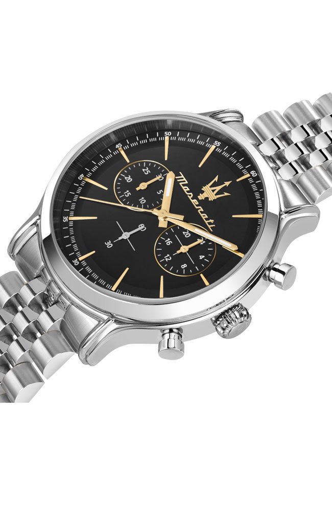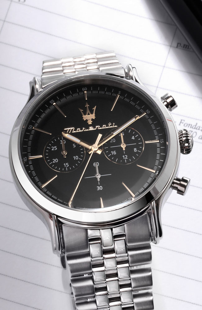 Ανδρικό ρολόι Maserati από ανοξείδωτο ατσάλι με μαύρο καντράν και μπρασελέ.
