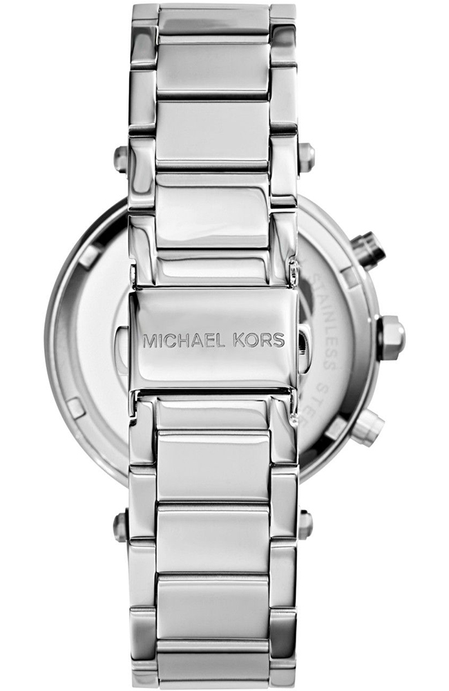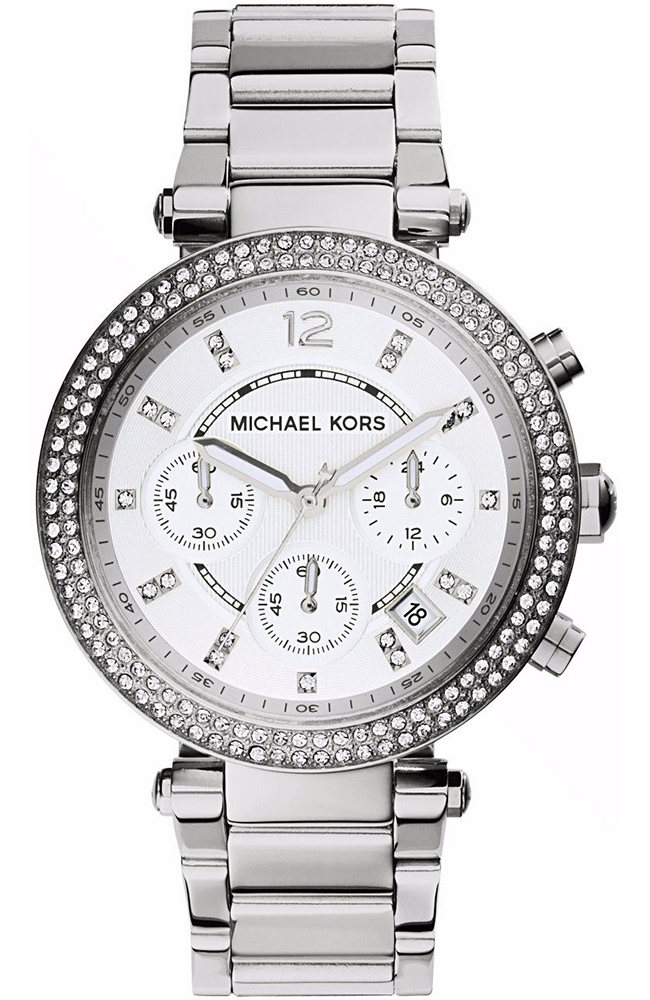 Γυναικείο ρολόι Michael Kors από ανοξείδωτο ατσάλι με λευκό καντράν, πέτρες ζιργκόν και μπρασελέ.