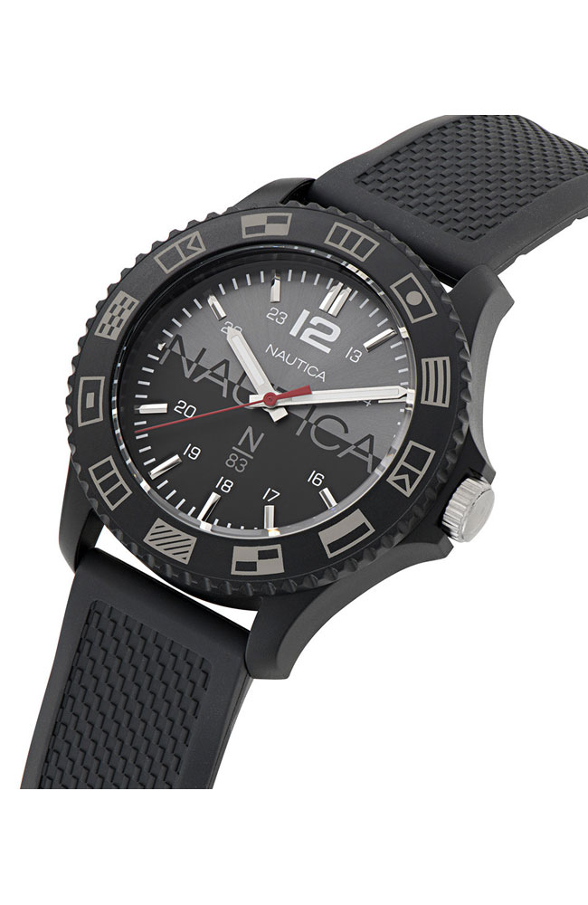 Ανδρικό ρολόι Nautica με μαύρο καντράν και καουτσούκ λουράκι.