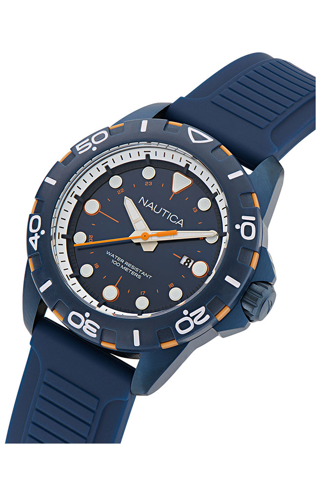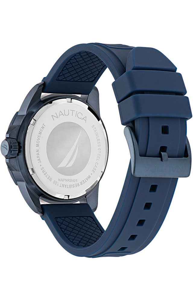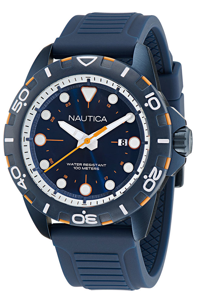 Ανδρικό ρολόι Nautica από μπλε ανοξείδωτο ατσάλι με μπλε καντράν και μπλε καουτσούκ λουράκι.