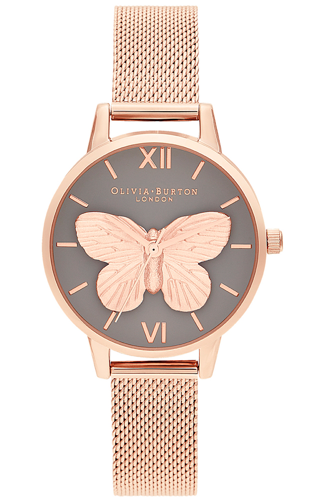 Γυναικείο ρολόι Olivia Burton από ροζ επιχρυσωμένο ανοξείδωτο ατσάλι με γκρι καντράν και μπρασελέ.
