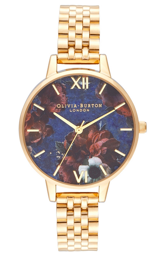 Γυναικείο ρολόι Olivia Burton από επιχρυσωμένο ανοξείδωτο ατσάλι με πολύχρωμο καντράν και μπρασελέ.