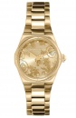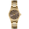 Γυναικείο ρολόι Olivia Burton από επιχρυσωμένο ανοξείδωτο ατσάλι με καφέ καντράν, πέτρες Ζιργκόν και χρυσό μπρασελέ.