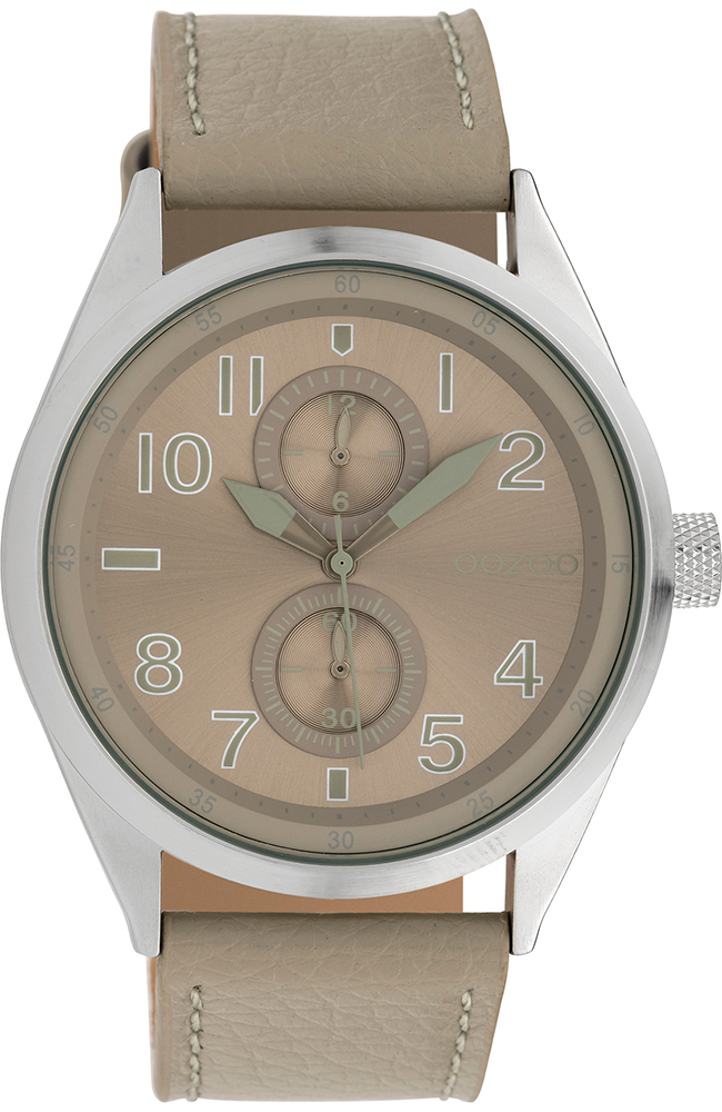 Ανδρικό ρολόι Oozoo με μπεζ καντράν και μπεζ δερμάτινο λουράκι.