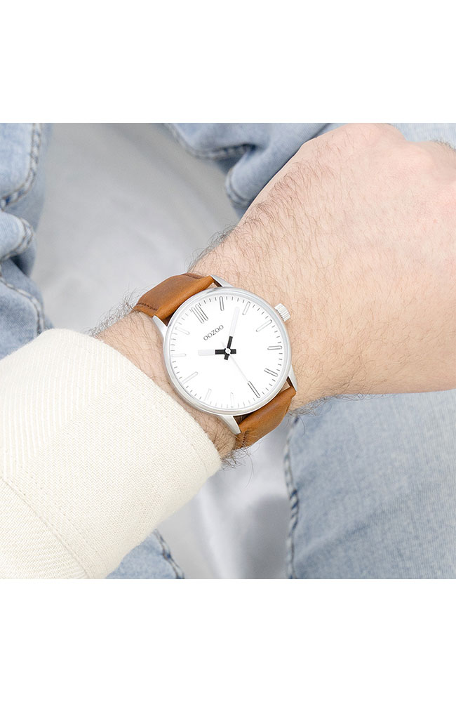 Ανδρικό ρολόι Oozoo με λευκό καντράν και δερμάτινο λουράκι.