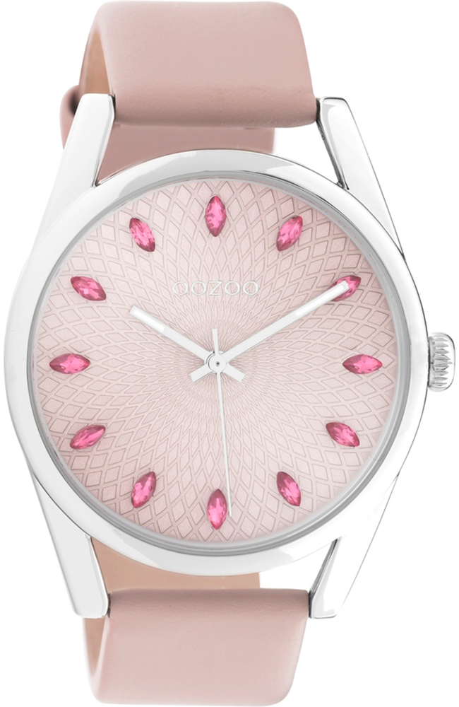 Ανδρικό ρολόι Oozoo με ροζ καντράν, πέτρες ζιργκόν και δερμάτινο λουράκι.