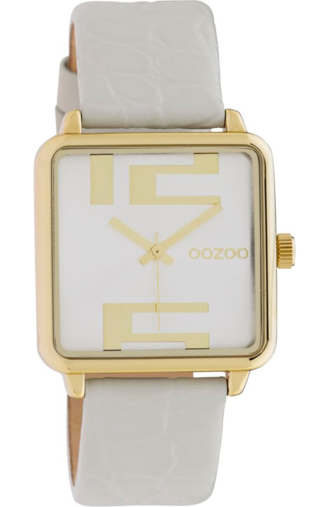 OOZOO Timepieces Gold White Leather Strap
