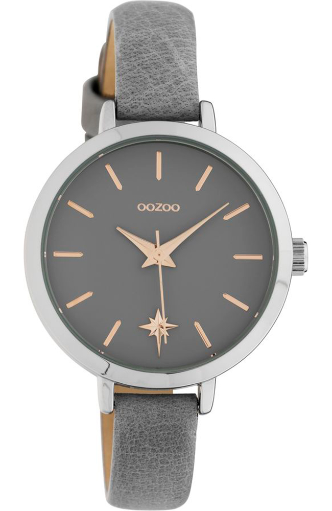 Γυναικείο ρολόι Oozoo με γκρι καντράν και γκρι δερμάτινο λουράκι.
