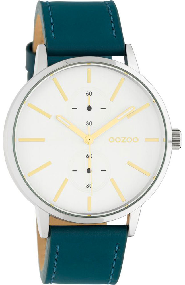 Ρολόι Oozoo με λευκό καντράν και πετρόλ δερμάτινο λουράκι.