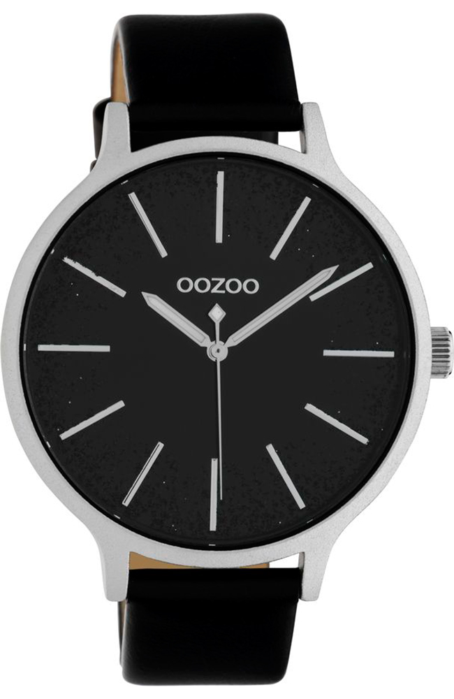 Γυναικείο ρολόι Oozoo με μαύρο καντράν και μαύρο δερμάτινο λουράκι.