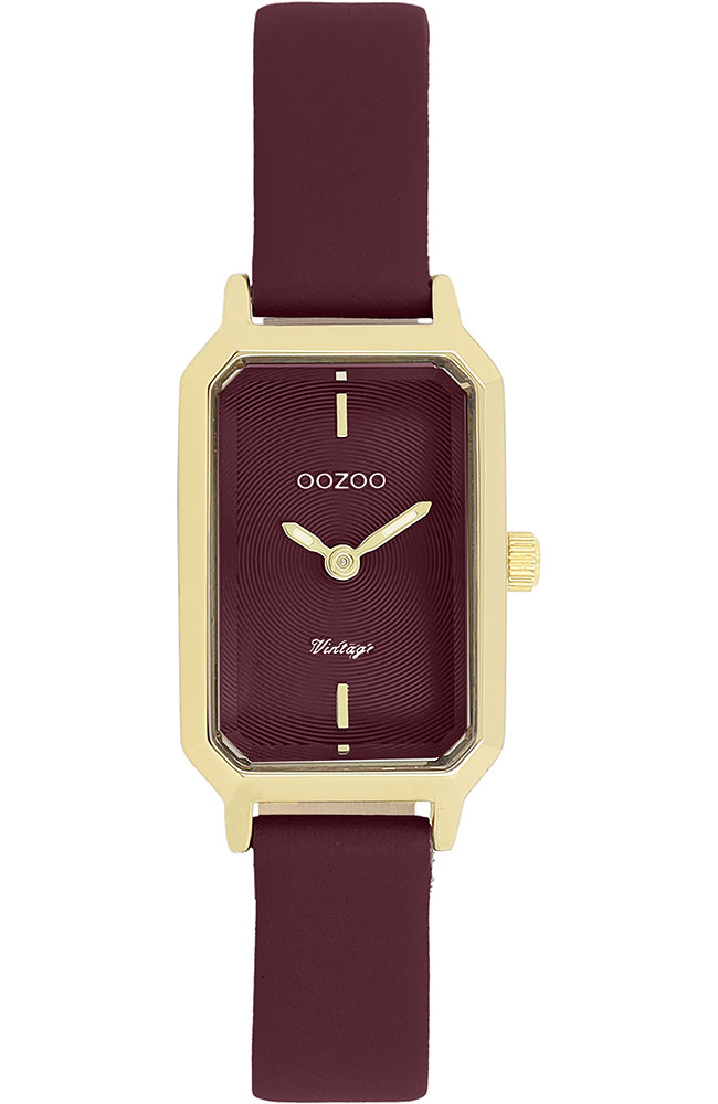 Γυναικείο ρολόι Oozoo με μπορντό καντράν και μπορντό δερμάτινο λουράκι.