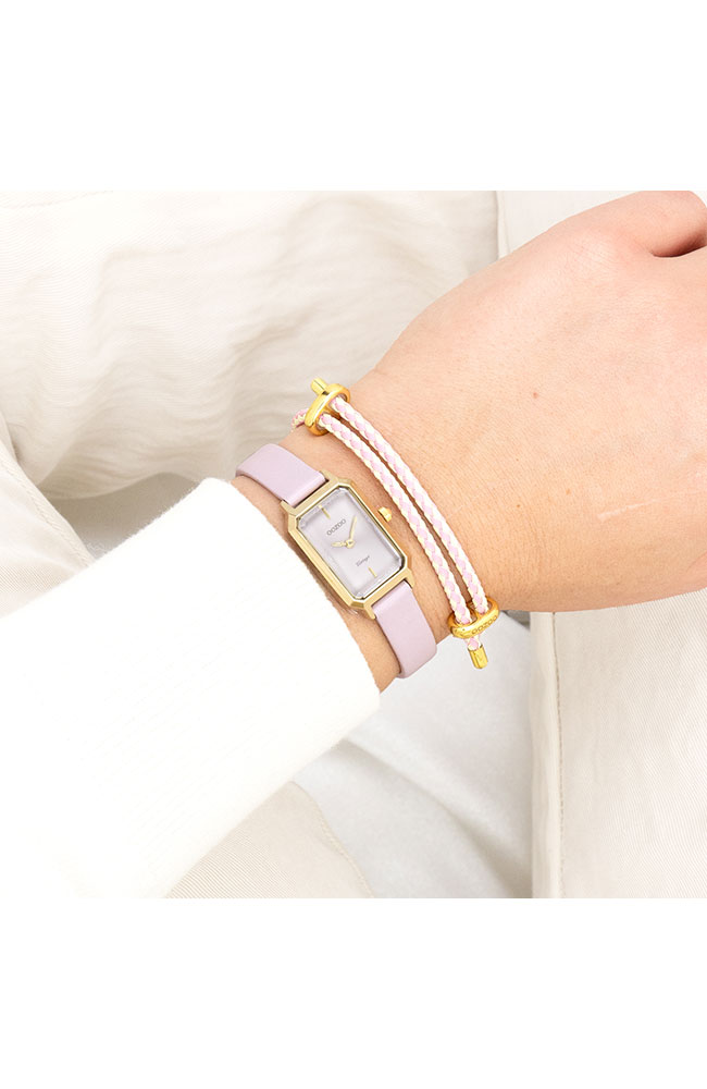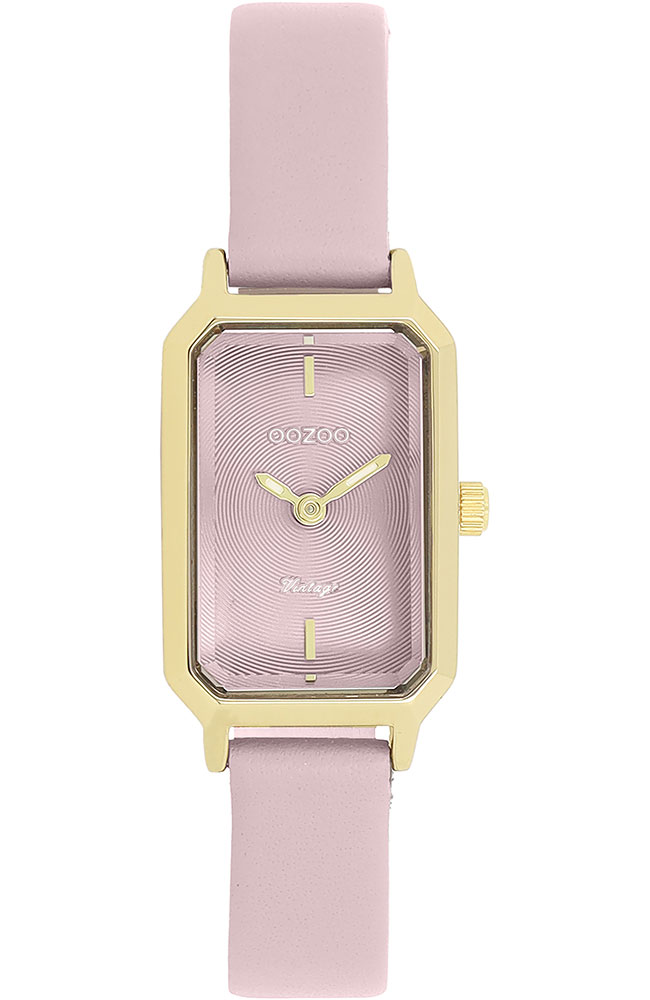 Γυναικείο ρολόι Oozoo με ροζ καντράν και ροζ δερμάτινο λουράκι.