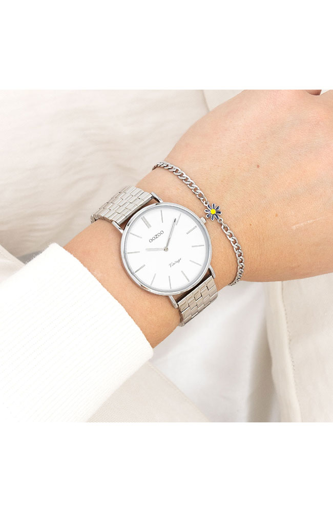 Γυναικείο ρολόι Oozoo με λευκό καντράν και μπρασελέ.