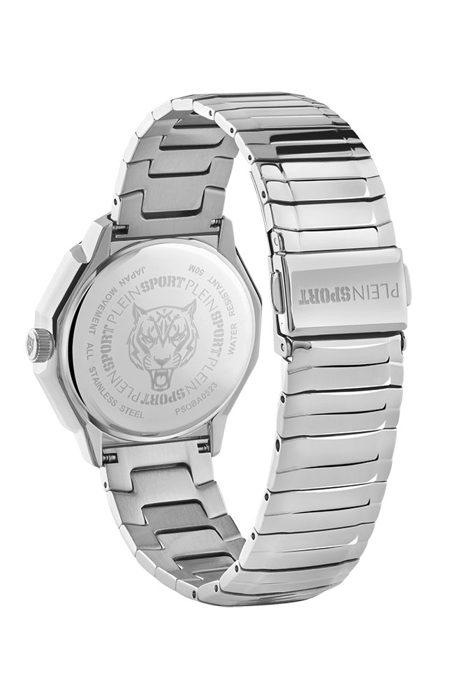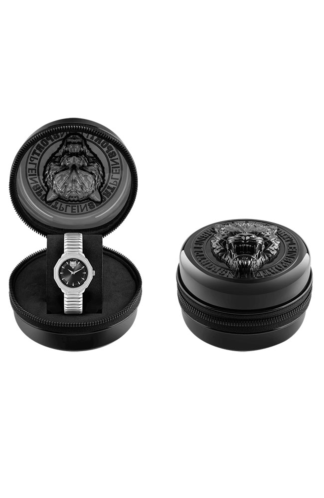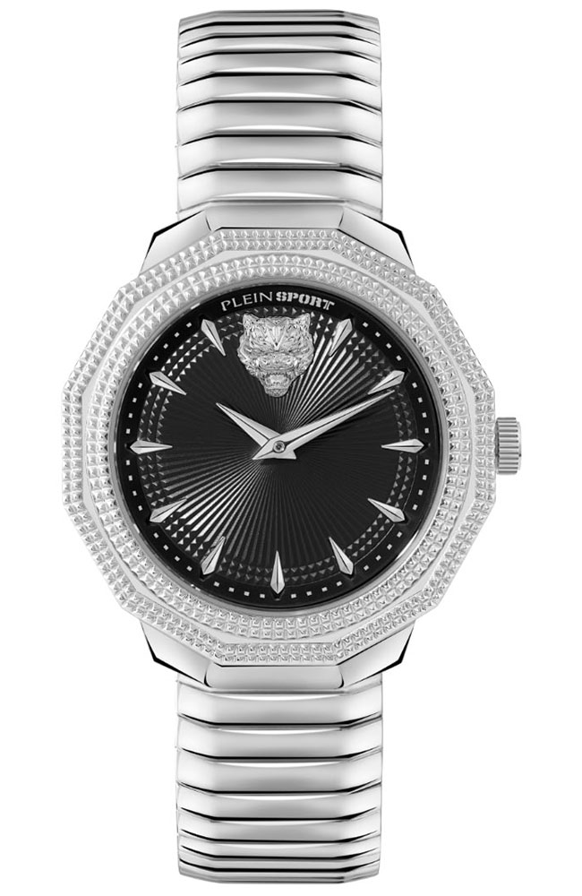 Γυναικείο ρολόι Philipp Plein Sport από ανοξείδωτο ατσάλι με μαύρο καντράν και ασημί μπρασελέ.