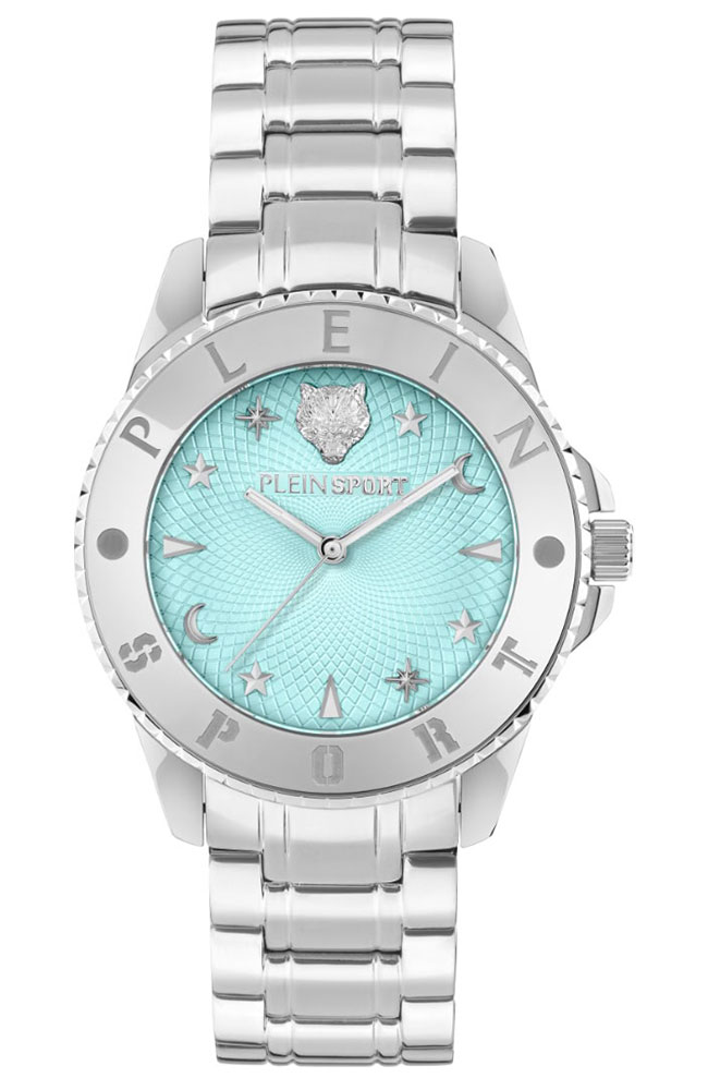 Γυναικείο ρολόι Philipp Plein Sport από ανοξείδωτο ατσάλι με γαλάζιο καντράν και ασημί μπρασελέ.