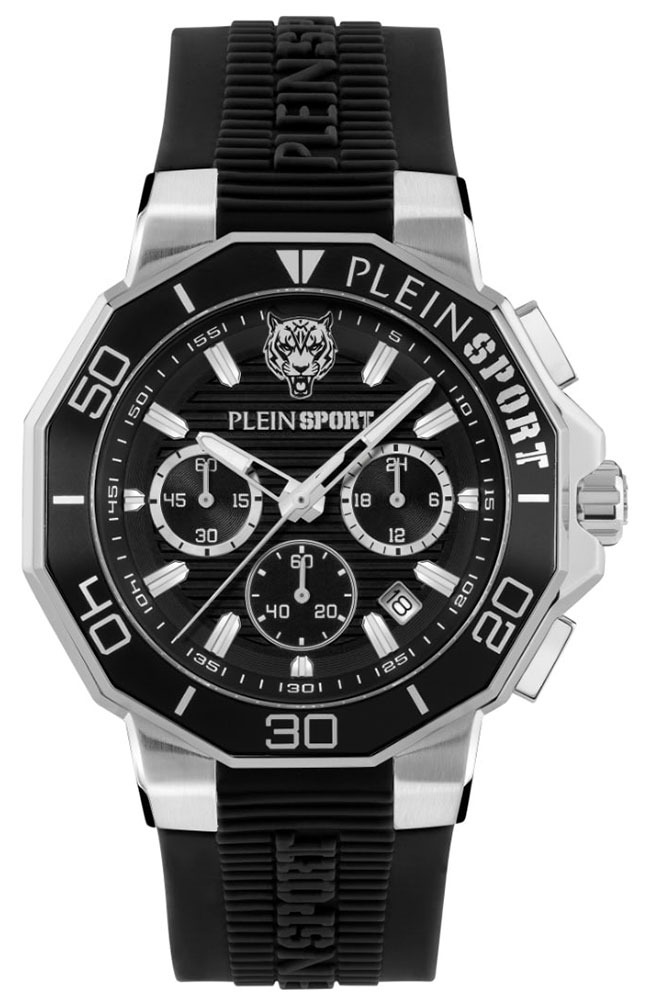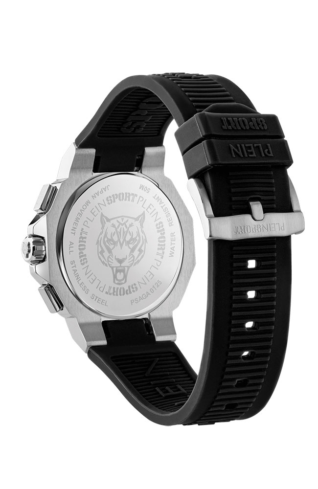 Ανδρικό ρολόι Philipp Plein Sport από ανοξείδωτο ατσάλι με μαύρο καντράν και μαύρο καουτσούκ λουράκι.