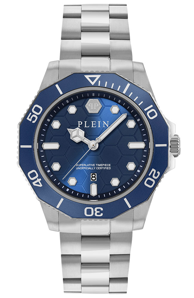 Ανδρικό ρολόι PHILIPP PLEIN από ανοξείδωτο ατσάλι με μπλε καντράν και μπρασελέ.