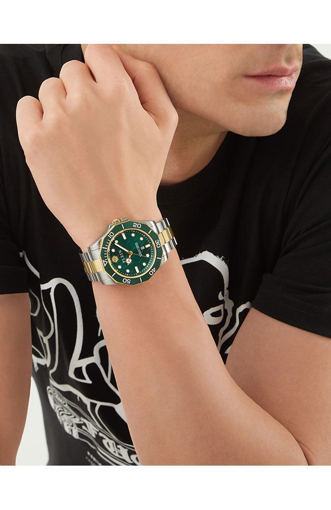 Ανδρικό ρολόι PHILIPP PLEIN από ανοξείδωτο ατσάλι με πράσινο καντράν και μπρασελέ.