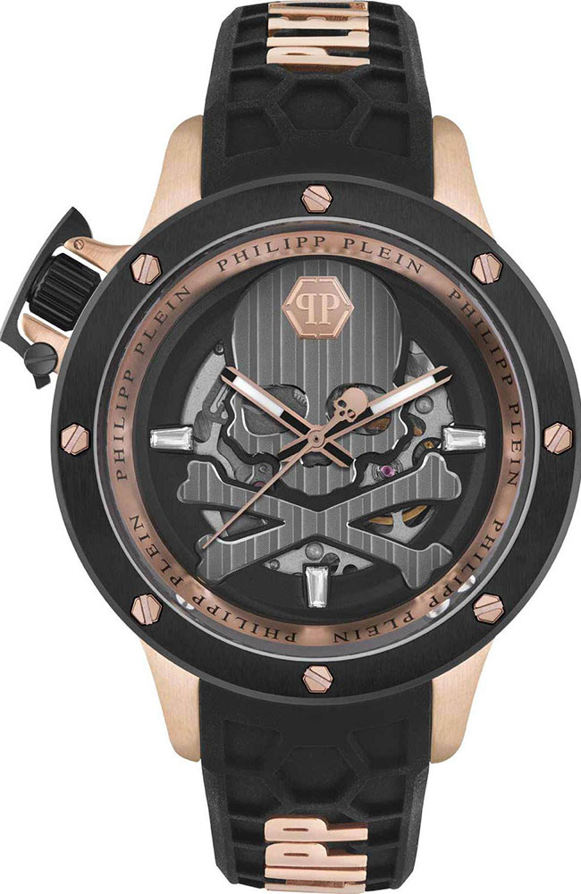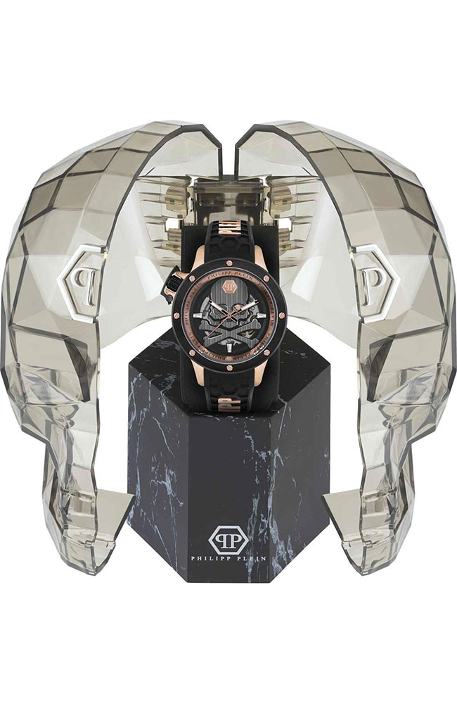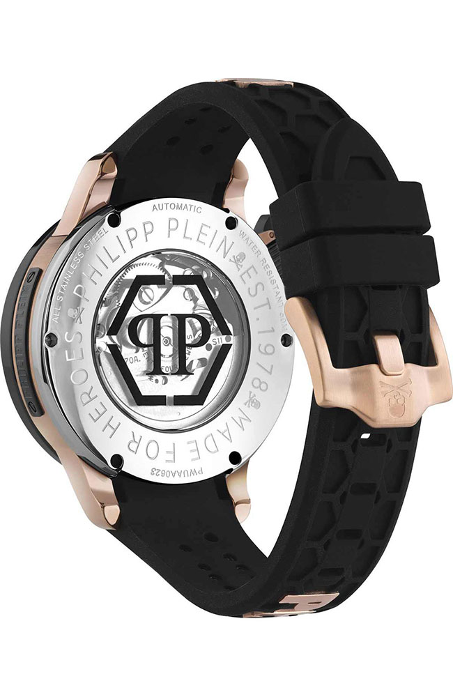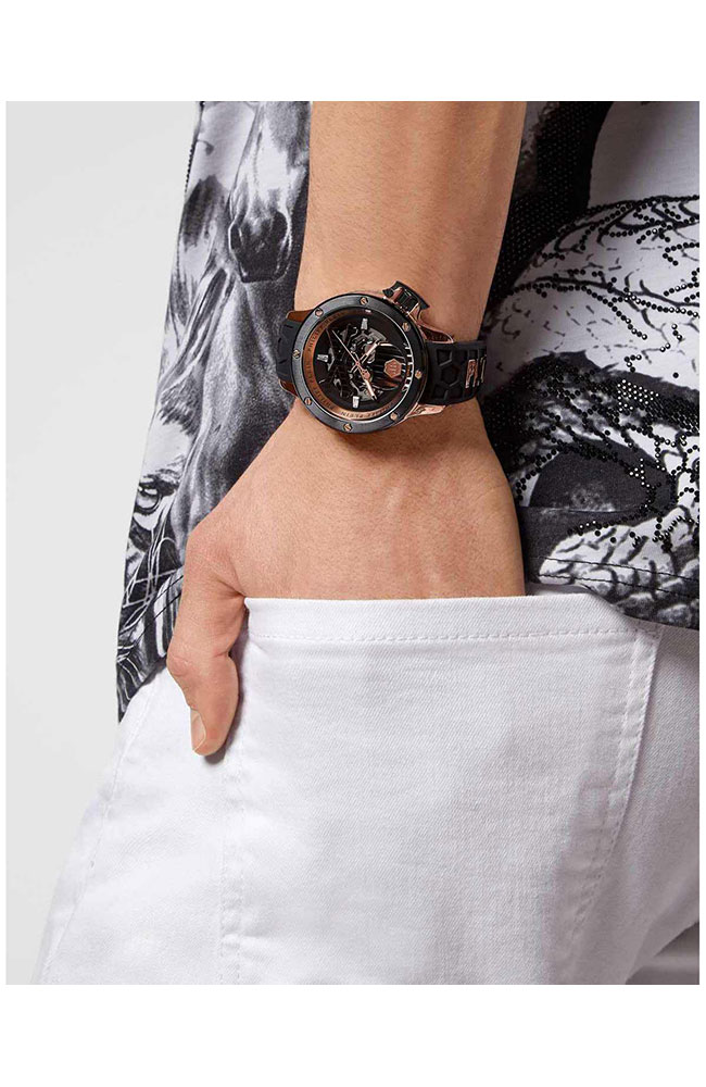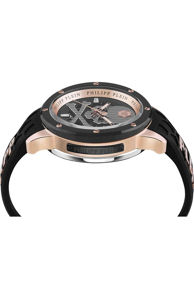 Ανδρικό ρολόι PHILIPP PLEIN από ανοξείδωτο ατσάλι με μαύρο καντράν και καουτσούκ λουράκι.