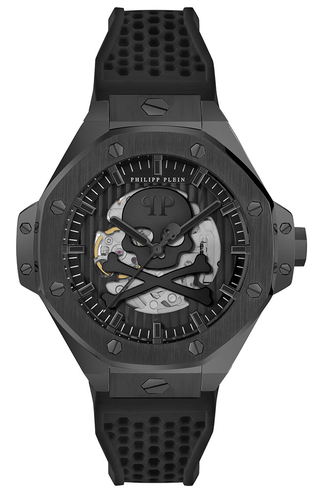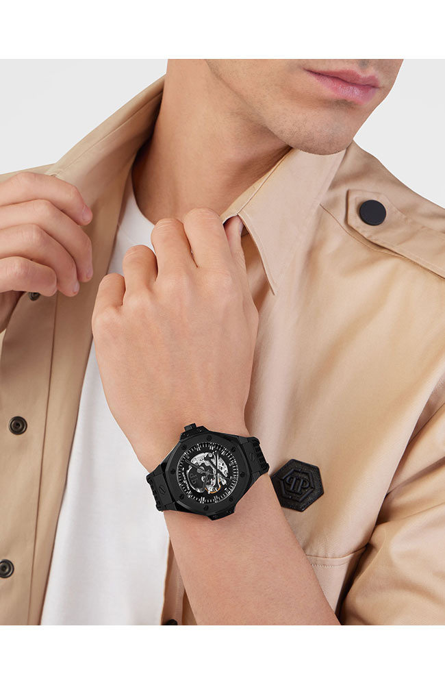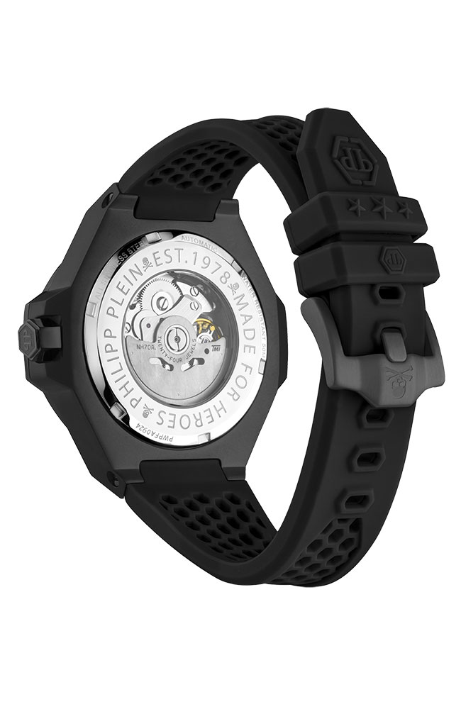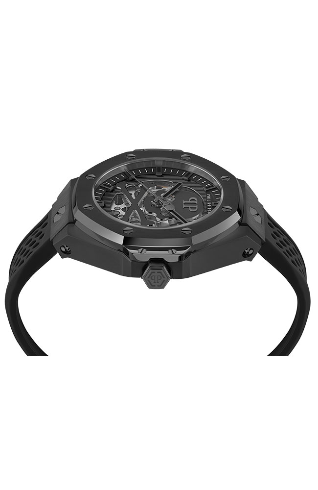 Ανδρικό ρολόι PHILIPP PLEIN από ανοξείδωτο ατσάλι με μαύρο καντράν και καουτσούκ λουράκι.