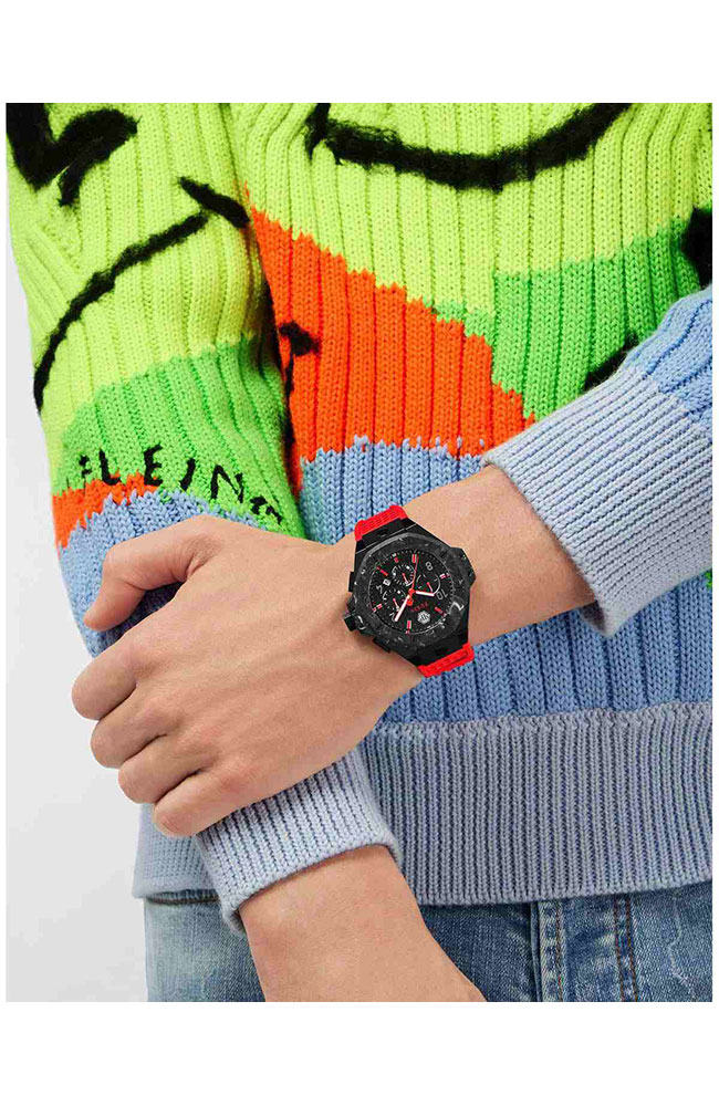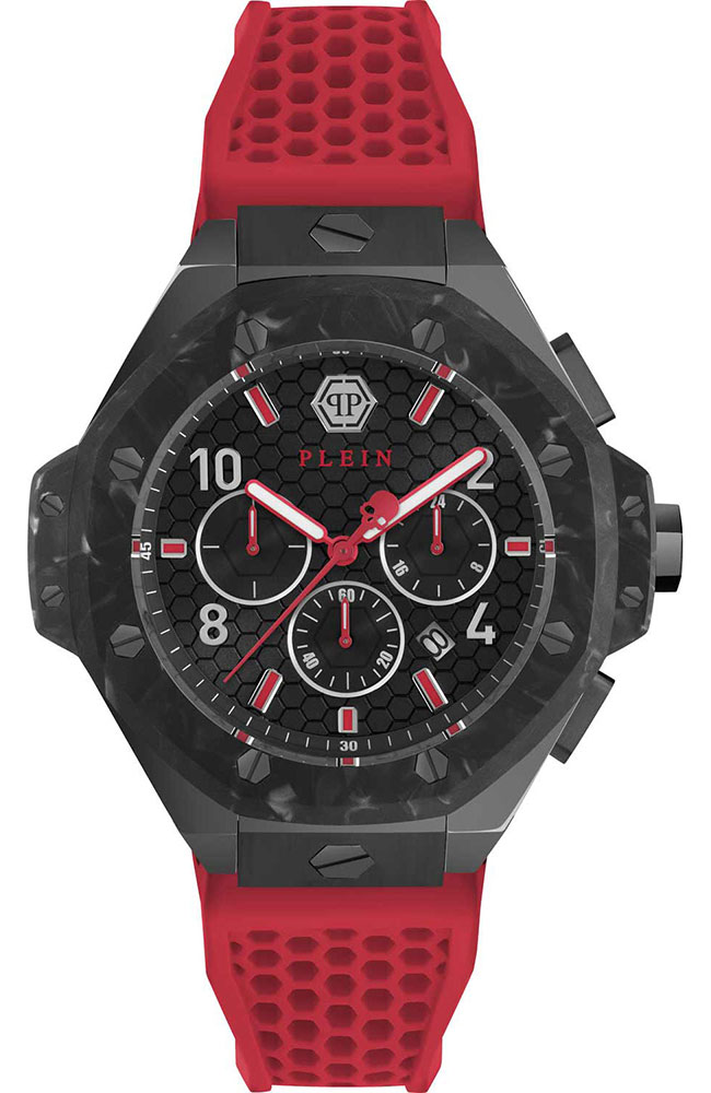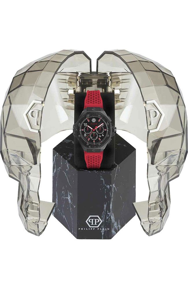 Ανδρικό ρολόι PHILIPP PLEIN από ανοξείδωτο ατσάλι με μαύρο καντράν και καουτσούκ λουράκι.