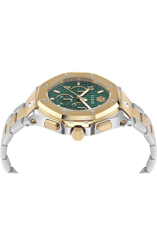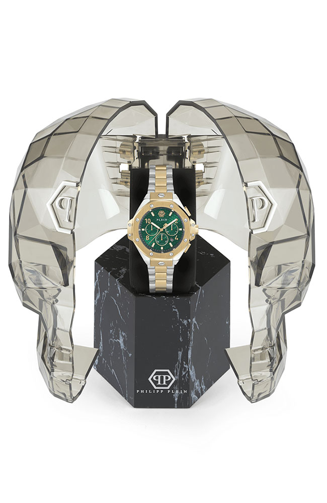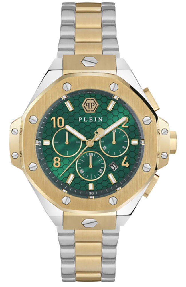 Ανδρικό ρολόι PHILIPP PLEIN από ανοξείδωτο ατσάλι με πράσινο καντράν και μπρασελέ.