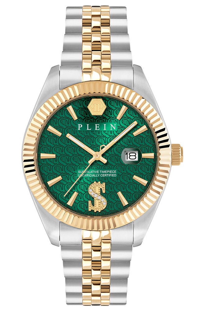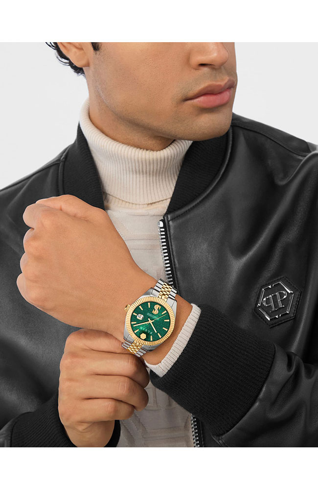 Ανδρικό ρολόι PHILIPP PLEIN από ανοξείδωτο ατσάλι με πράσινο καντράν και μπρασελέ.