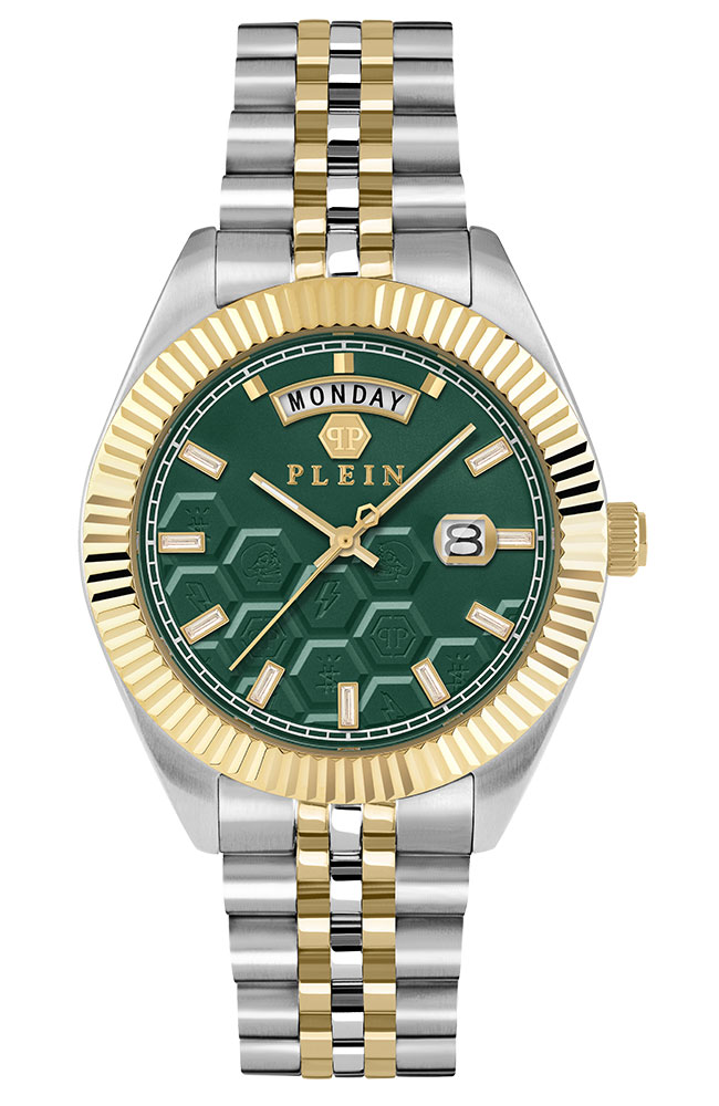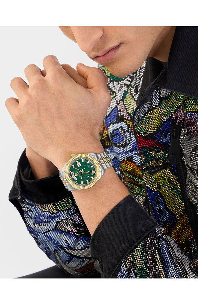 Ανδρικό ρολόι PHILIPP PLEIN από ανοξείδωτο ατσάλι με πράσινο καντράν και μπρασελέ.