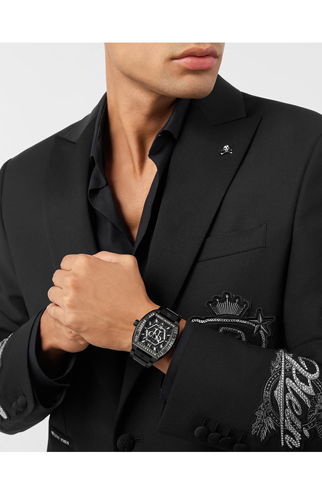 Ανδρικό ρολόι PHILIPP PLEIN από ανοξείδωτο ατσάλι με μαύρο καντράν και μπρασελέ.