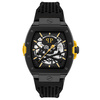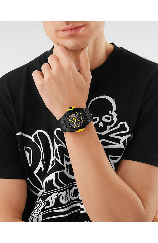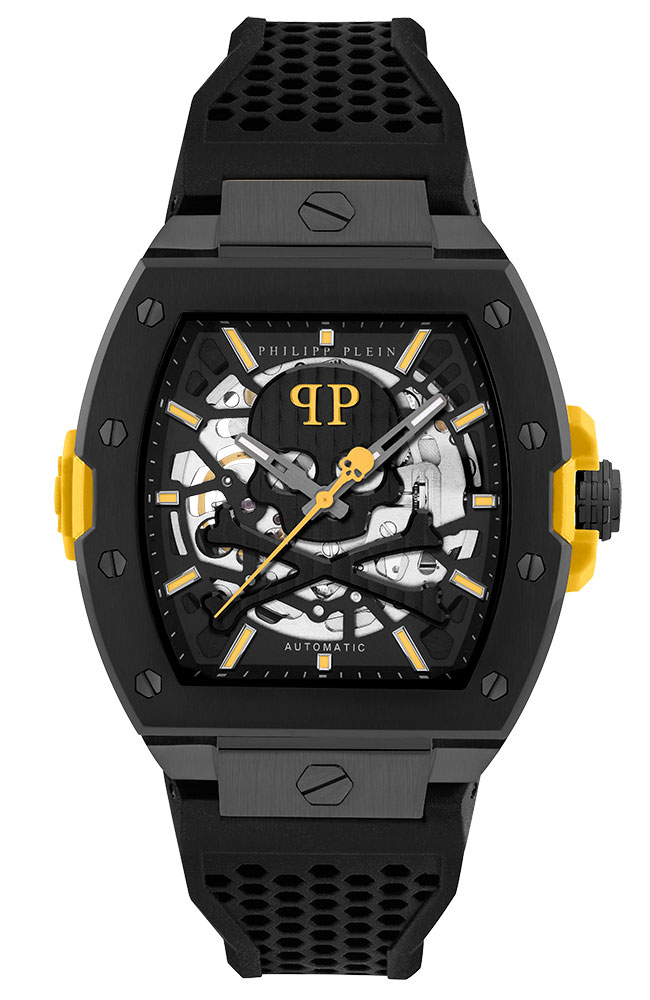 Ανδρικό ρολόι PHILIPP PLEIN από ανοξείδωτο ατσάλι με μαύρο καντράν και μαύρο καουτσούκ λουράκι.