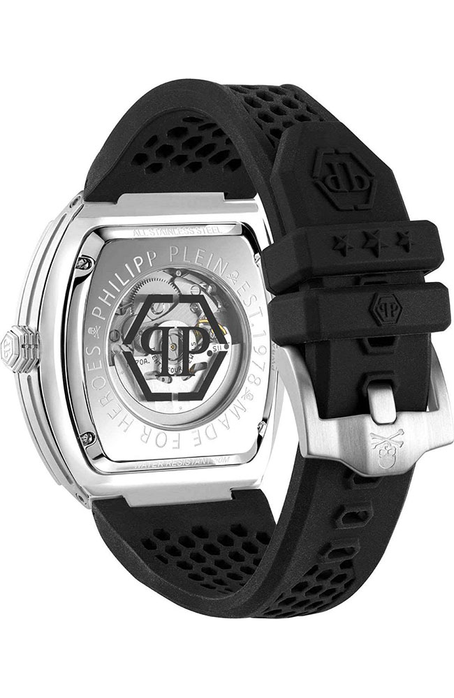 Ανδρικό ρολόι PHILIPP PLEIN από ανοξείδωτο ατσάλι με ασημί καντράν και καουτσούκ λουράκι.