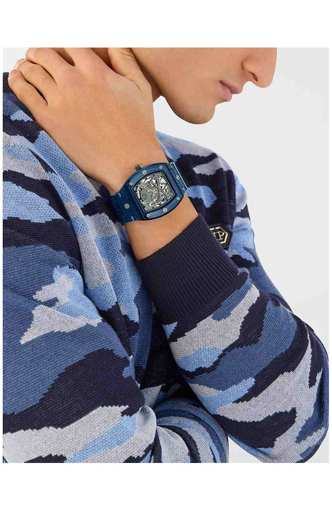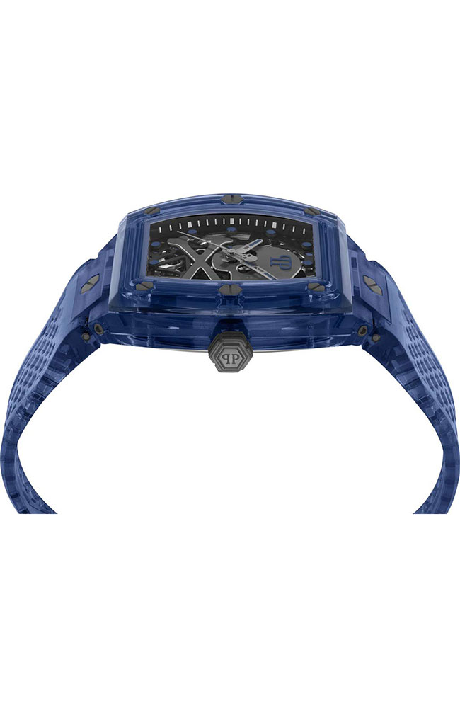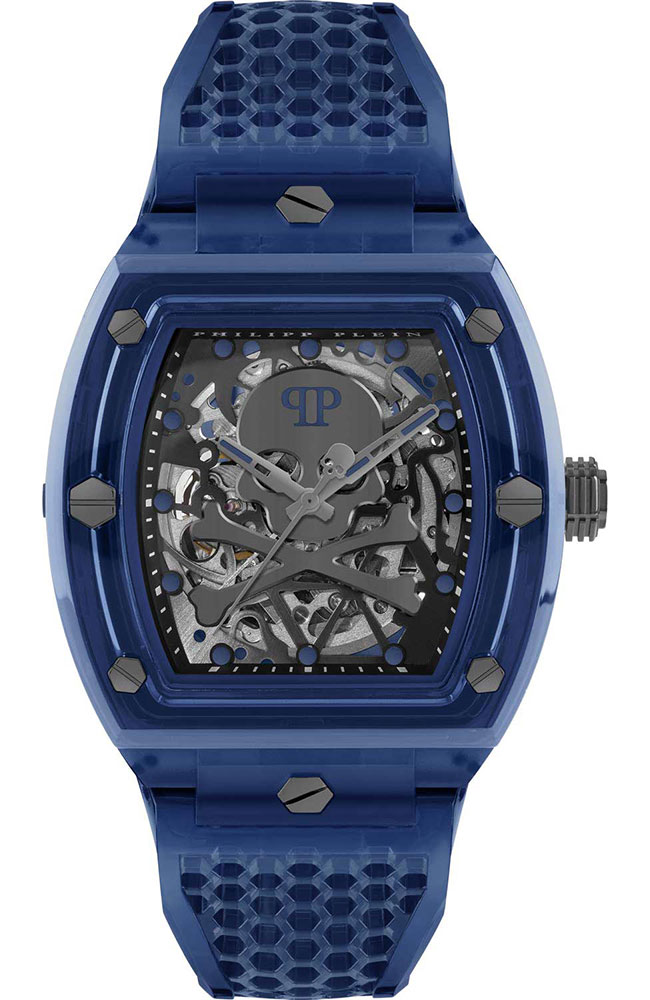 Ανδρικό ρολόι PHILIPP PLEIN από ανοξείδωτο ατσάλι με μαύρο καντράν και καουτσούκ λουράκι.