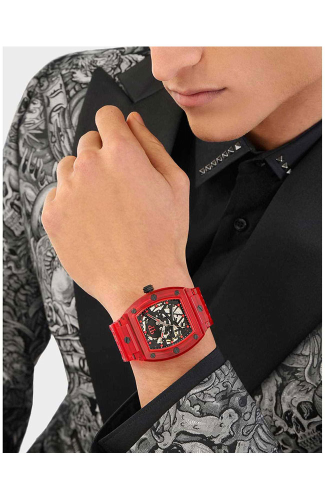 Ανδρικό ρολόι PHILIPP PLEIN από ανοξείδωτο ατσάλι με μαύρο καντράν και καουτσούκ λουράκι.