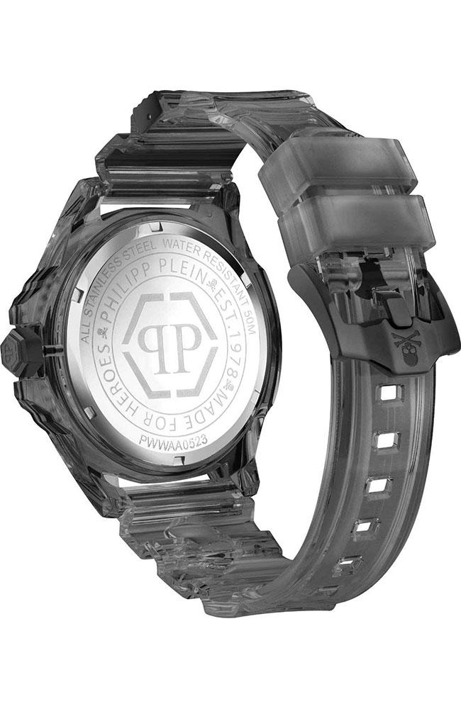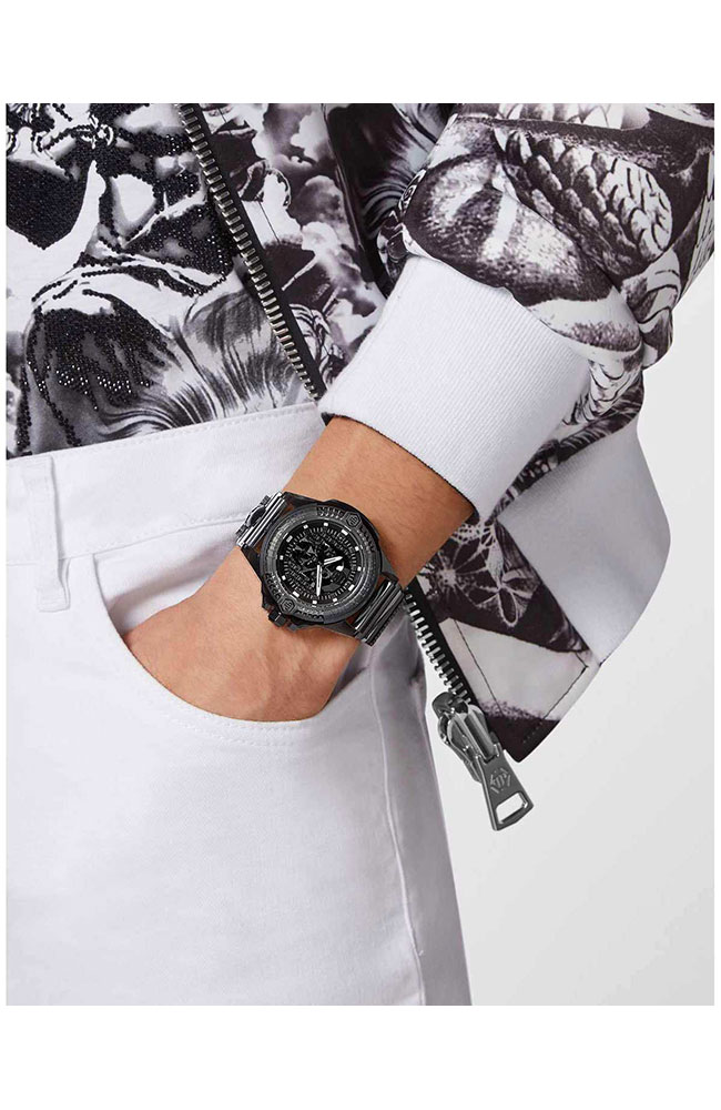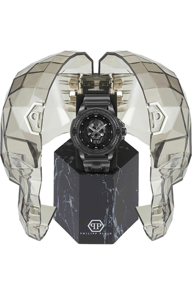 Ανδρικό ρολόι PHILIPP PLEIN από ανοξείδωτο ατσάλι με μαύρο καντράν και καουτσούκ λουράκι.