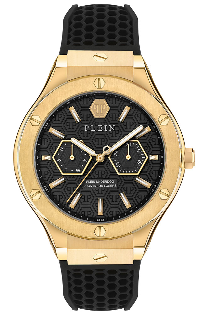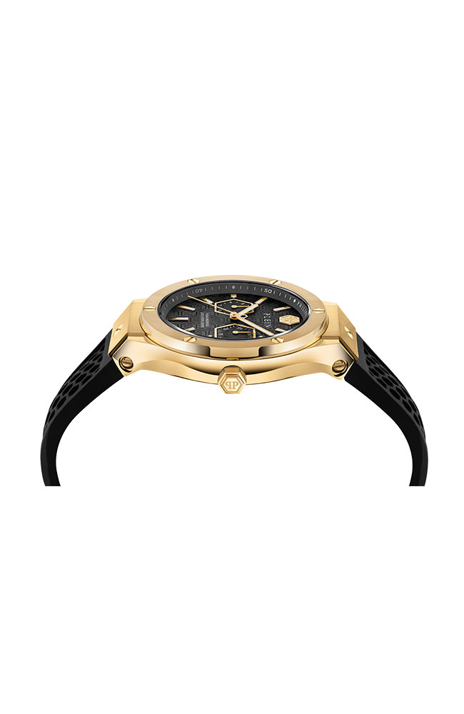 Ανδρικό ρολόι PHILIPP PLEIN από ανοξείδωτο ατσάλι με μαύρο καντράν και καουτσούκ λουράκι.