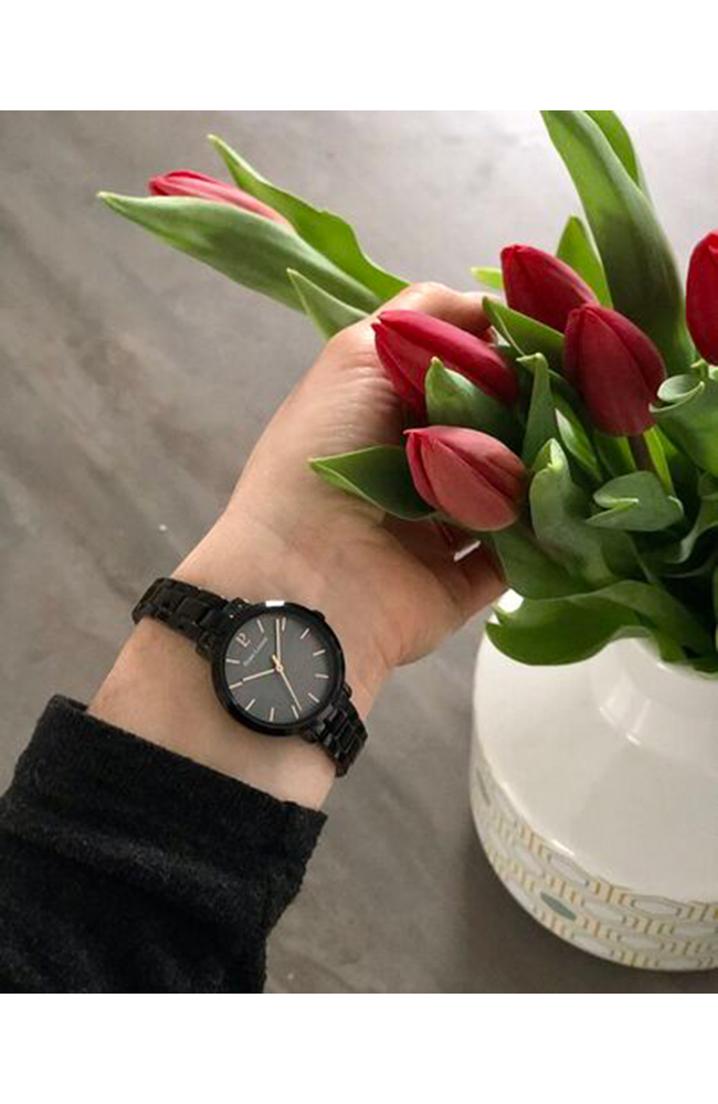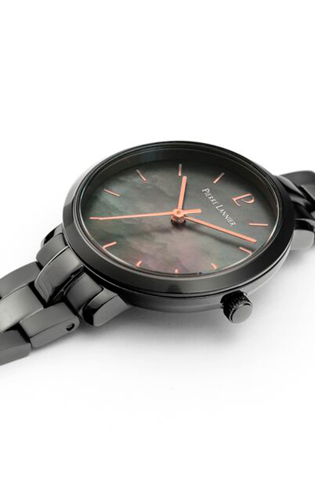 Γυναικείο ρολόι Pierre Lannier από ανοξείδωτο ατσάλι με μαύρο φίλντισι καντράν και μπρασελέ.