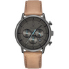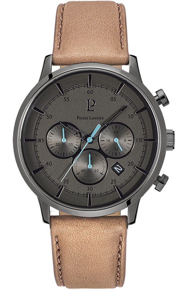 Ανδρικό ρολόι Pierre Lannier από ανοξείδωτο ατσάλι με ανθρακί καντράν και καφέ δερμάτινο λουράκι.