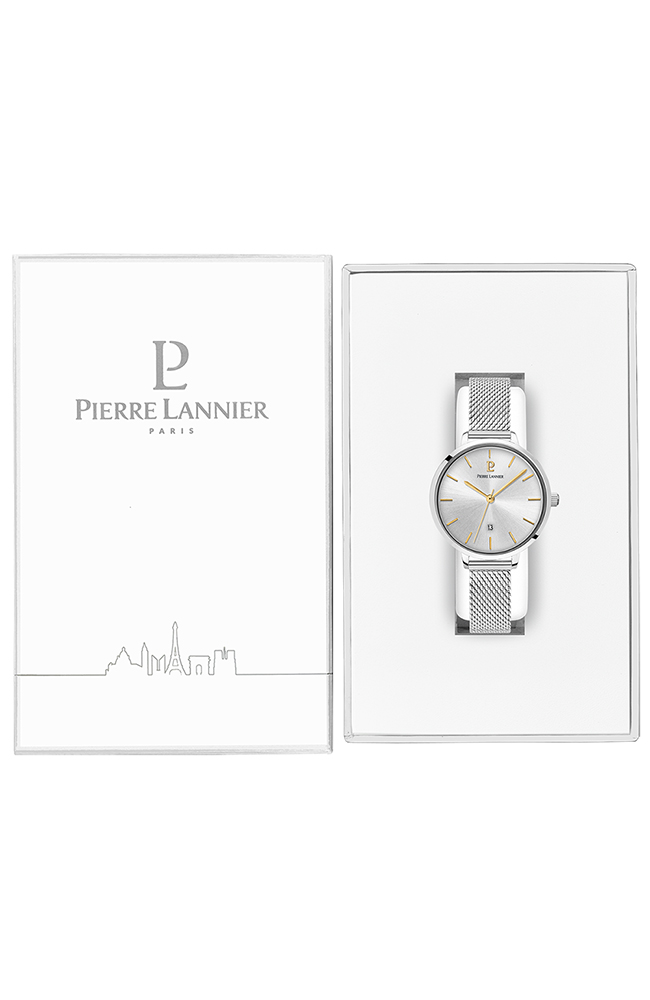 Γυναικείο ρολόι Pierre Lannier από ανοξείδωτο ατσάλι με ασημί καντράν και μπρασελέ.