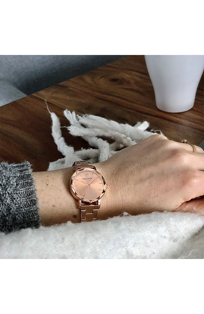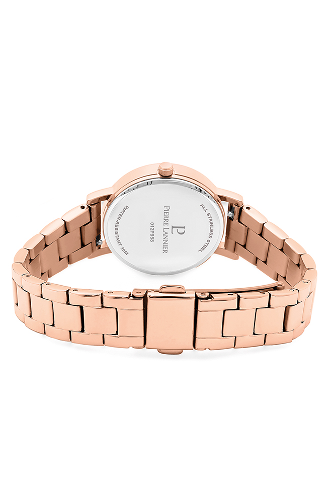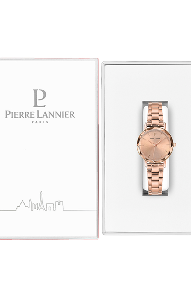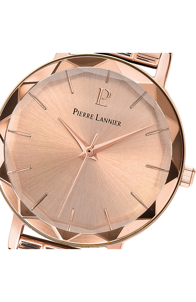 Γυναικείο ρολόι Pierre Lannier από ροζ επιχρυσωμένο ανοξείδωτο ατσάλι με ροζ χρυσό καντράν και μπρασελέ.