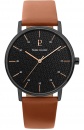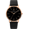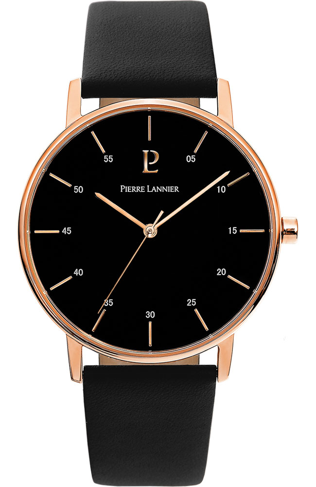 Ανδρικό ρολόι Pierre Lannier από ροζ επιχρυσωμένο ανοξείδωτο ατσάλι με μαύρο καντράν και μαύρο δερμάτινο λουράκι.