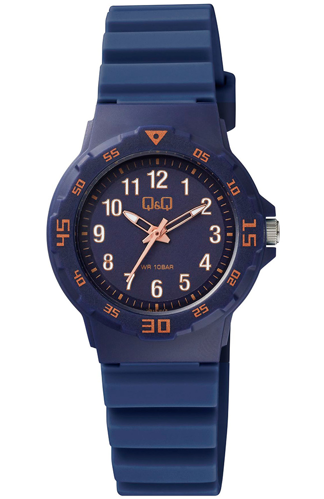 Παιδικό ρολόι χειρός Q&Q με μπλε καντράν και καουτσούκ λουράκι.