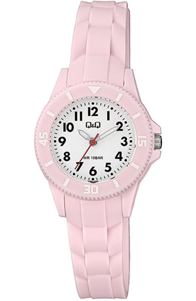 Παιδικό ρολόι χειρός Q&Q με λευκό καντράν και καουτσούκ λουράκι.