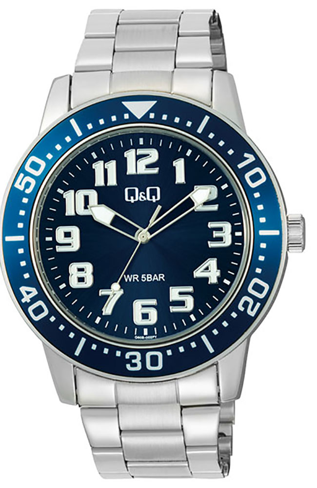 Ανδρικό ρολόι χειρός Q&Q με μπλε καντράν και ασημί μπρασελέ.