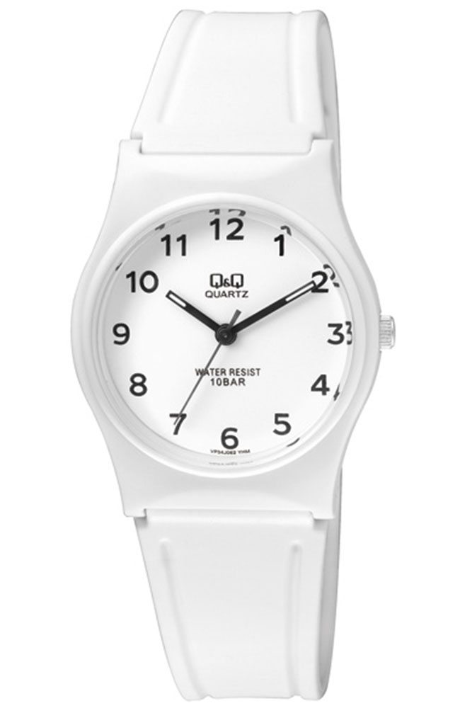 Γυναικείο ρολόι χειρός Q&Q με λευκό καντράν και λευκό καουτσούκ λουράκι.
